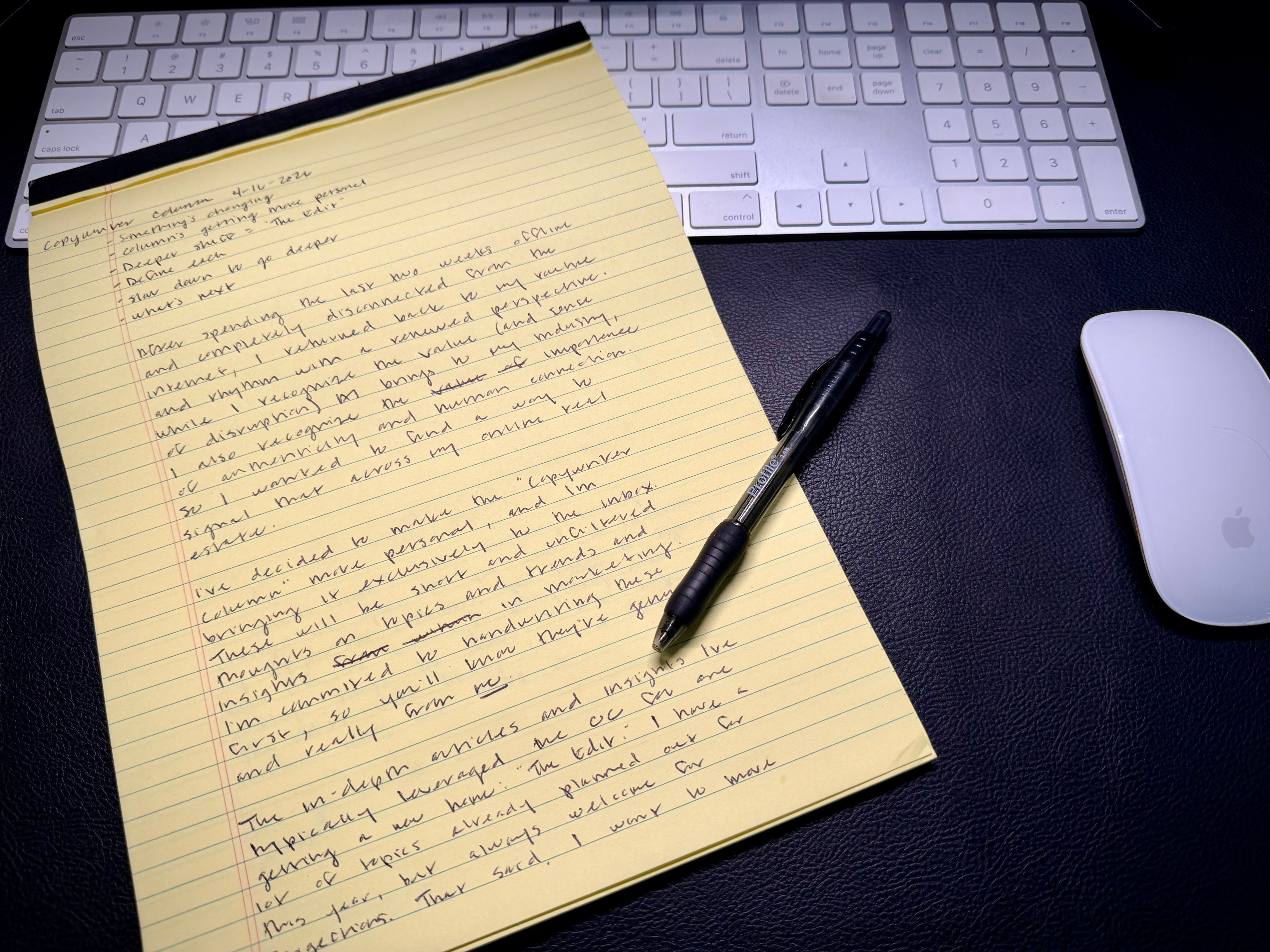 These will be short and unfiltered thoughts on topics and trends and insights in marketing. I’m committed to handwriting these first, so you’ll know they’re genuine and really from me.