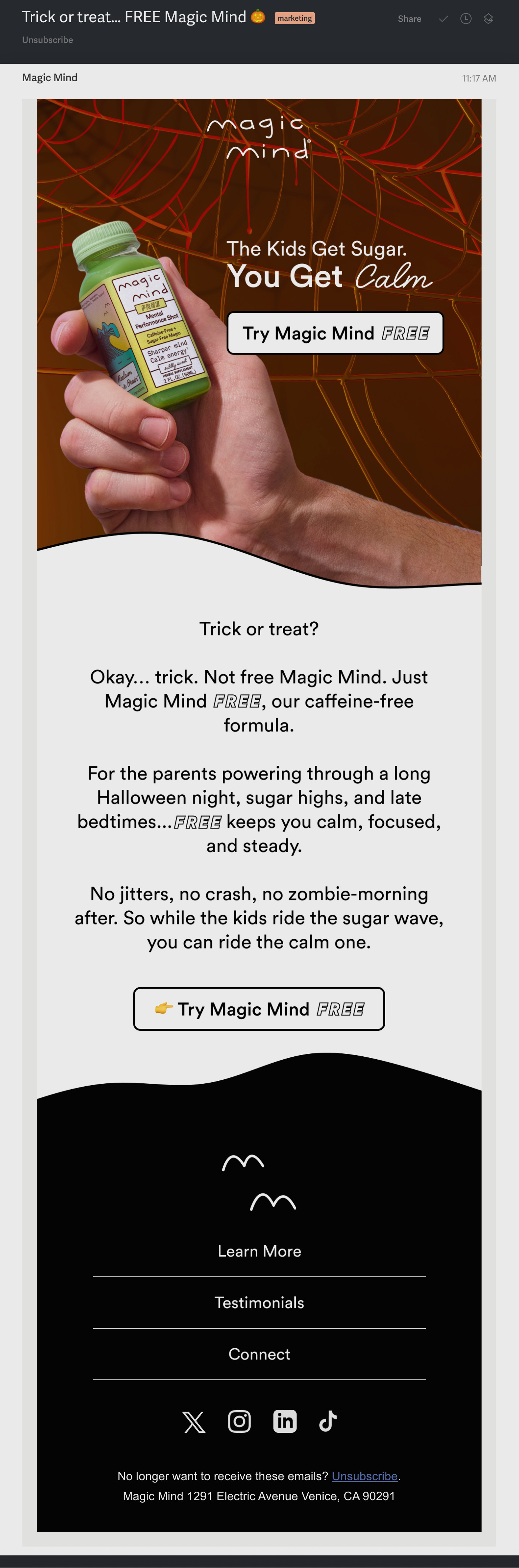 Why I like it 👉 This was definitely a bait-and-switch (er, trick and treat?). Tricky product name to work with while not misleading your customer, but I like the way they did with framing it around Halloween. Also, when kids are riding sugar waves, parents definitely would prefer the calm wave.