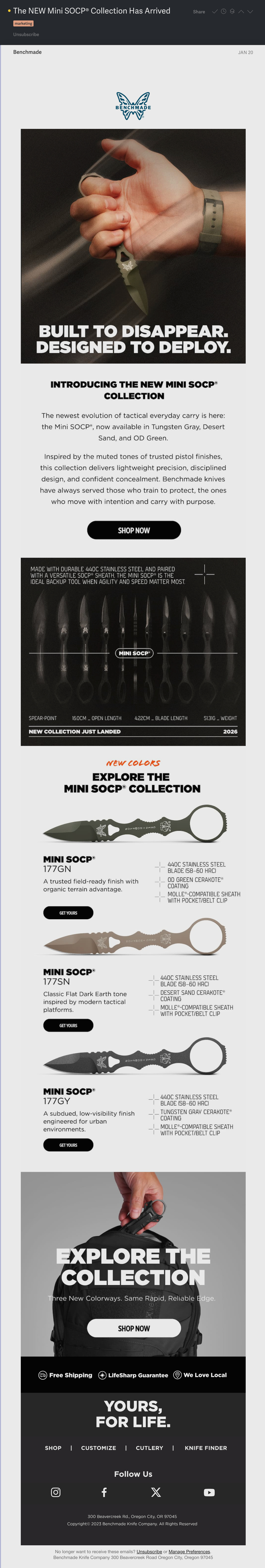 Swipe File Additions (Benchmade, AllTrails, Water?)