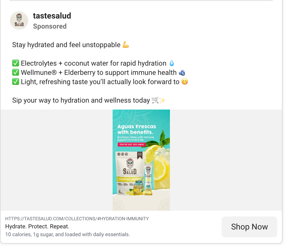 Super simple ad, which just adds to the notion that “less is more.” In particular, I liked the headline in the bottom of the ad: “Hydrate. Protect. Repeat.” It does a good job conveying the benefits and simplicity of the product.