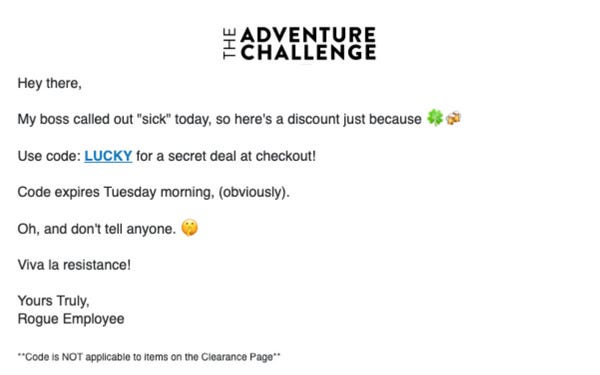 Why I like it: At some point, every dog owner catches their pup licking its paws. So, already, the subject line grabbed my attention. Then once I opened the email, the headline further piqued my interest. While I didn’t click the CTA (boooorrriiinng), the initial body copy sparked my curiosity and kept me reading to the end. So what did I like about this? The format (and copy) took me on a journey and propelled me through the entire email.