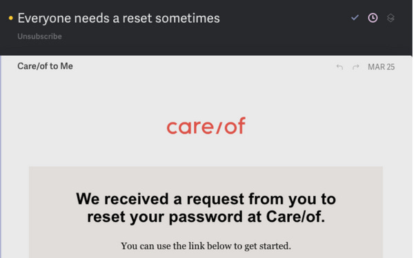 Why I like it: This is a great example of how you can take an automated admin type of email and make it something special with nothing more than a shift to your subject line. It’s on-brand and relevant to what’s inside.