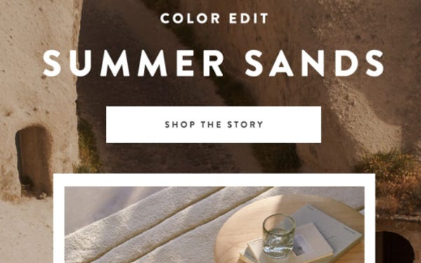 Why I like it: Looooove this email. It’s super visual, but it makes you imagine what your home will feel like with one of these rugs — a beautiful and dreamy desert. Complete soft sell, but made me want to buy something in that color because of the romanticization!
