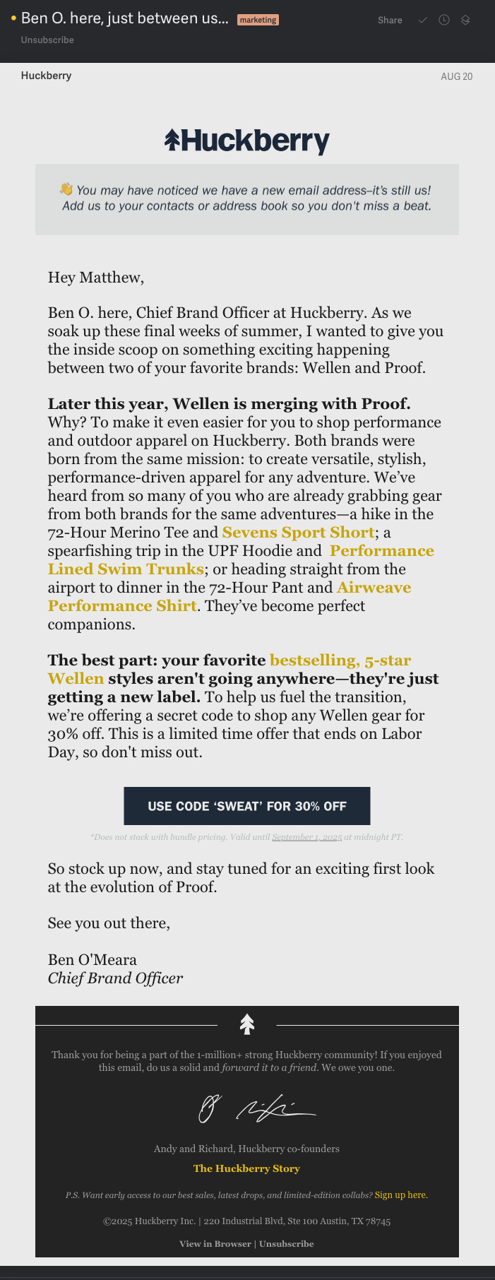 Why I like it 👉 Sorry that I’ve featured Huckberry emails two weeks in a row, but I liked this one too. It’s a great VIP-centric email, which goes a long way for keeping people loyal to your brand (by offering exclusive discounts)